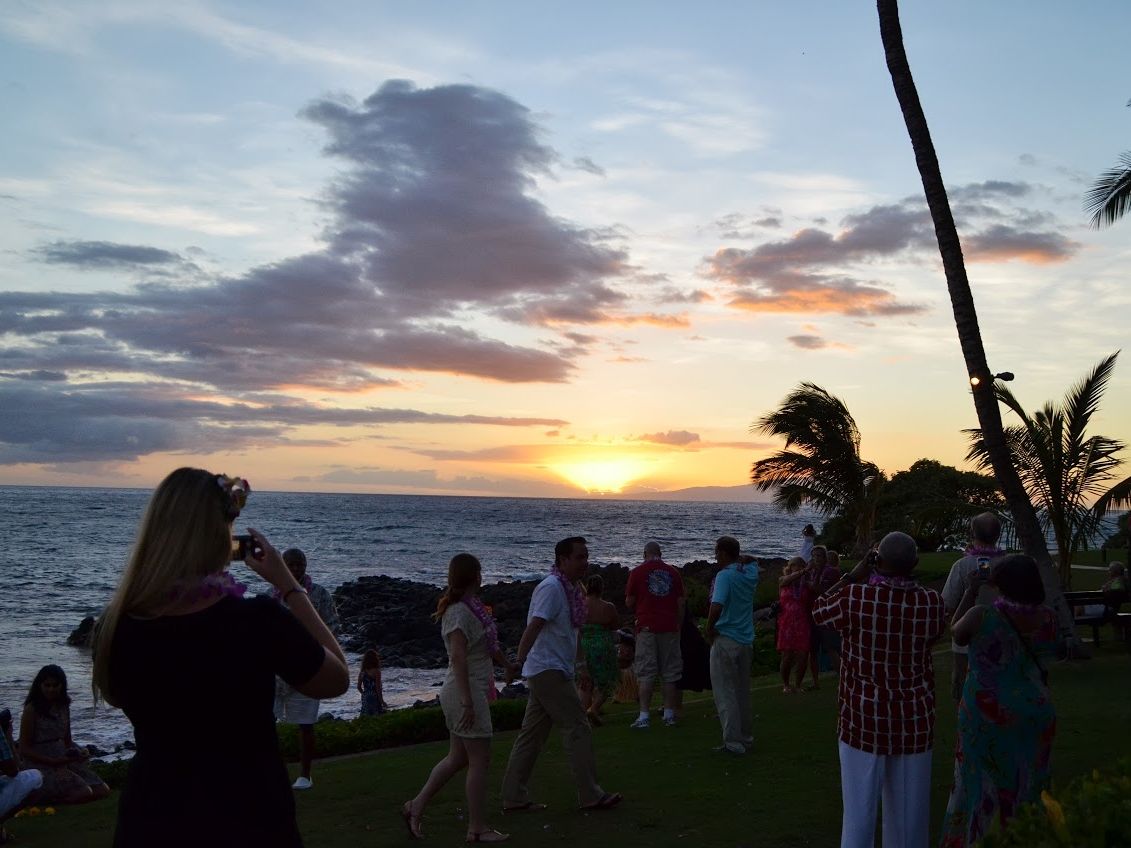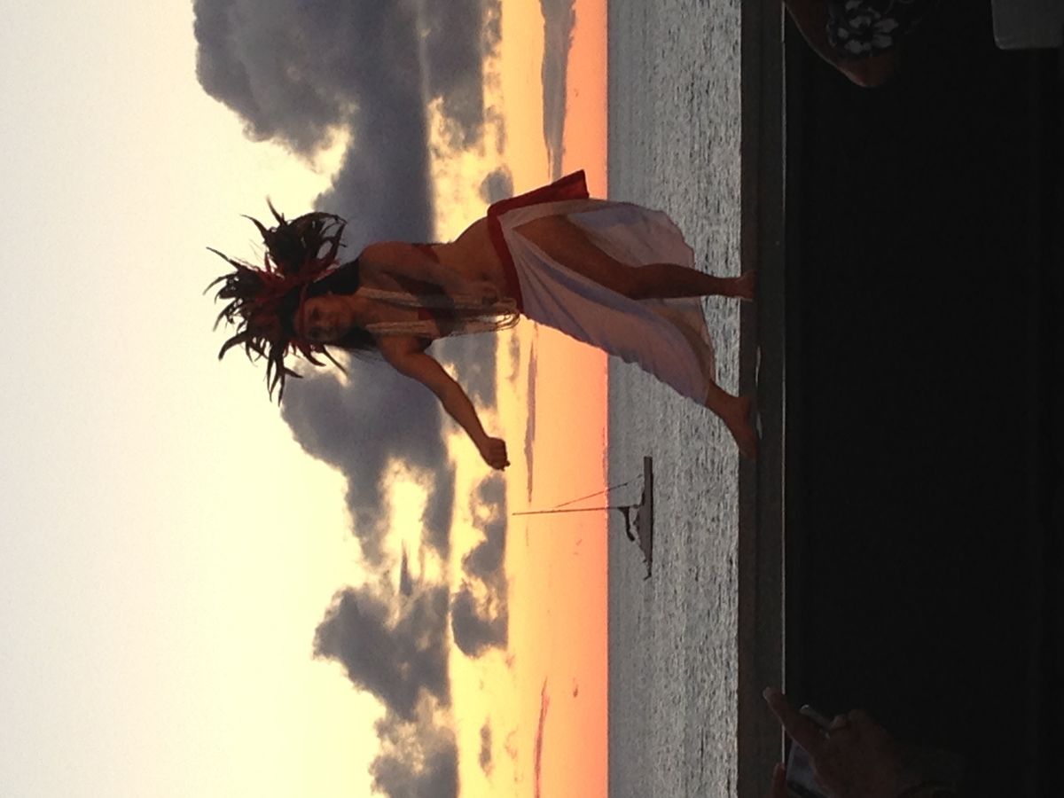 日没をはさんで催されるイベント盛り沢山のガーデンパーティーでした。会場は一級の景勝地で海の彼方に沈みゆく夕日を眺めながら様々なショーとバッフェ形式の食事を楽しめました。また、ショーの出演者たちは、見とれるようなイケメンと美女ぞろいだったように感じました。参加者はアメリカ本土からが中心で、司会進行は英語のみなので英語があまりわからない祖母は少し困惑気味だったかもしれません。