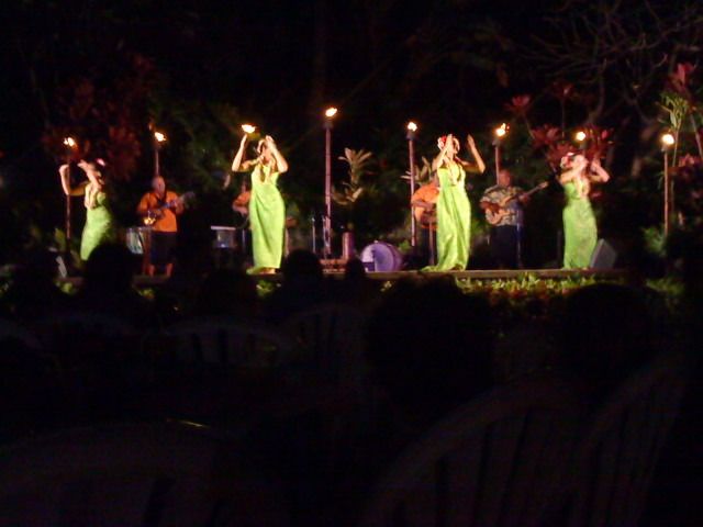 For my kids first time in Maui I wanted them to experience a true Luau. We didn't want to pay the price that the Old Lahaina Luau charged (even though we had been to it on our honeymoon and loved it, and everyone always says its the best one on Maui) so we went to the Hyatt. I was disappointed that it was on concrete with the stage so far away, after we waited in the rain and sunny heat (yes at the same time!) in line for 45 minutes! The mai-tai's were not very strong either and we wanted to get the most bang for our buck. On the other hand, the show was entertaining enough, the staff was very friendly, and we met a lovely family from Tokyo, so we all had a great time. The fire dancers were a big hit! I thought the food was EXCELLENT, especially for such a large buffet, and my kids really enjoyed the whole thing. For the price, it was a decent deal since one of my kids was free, but I think The Old Lahaina Luau is the only way I would go if I had it to do over again.