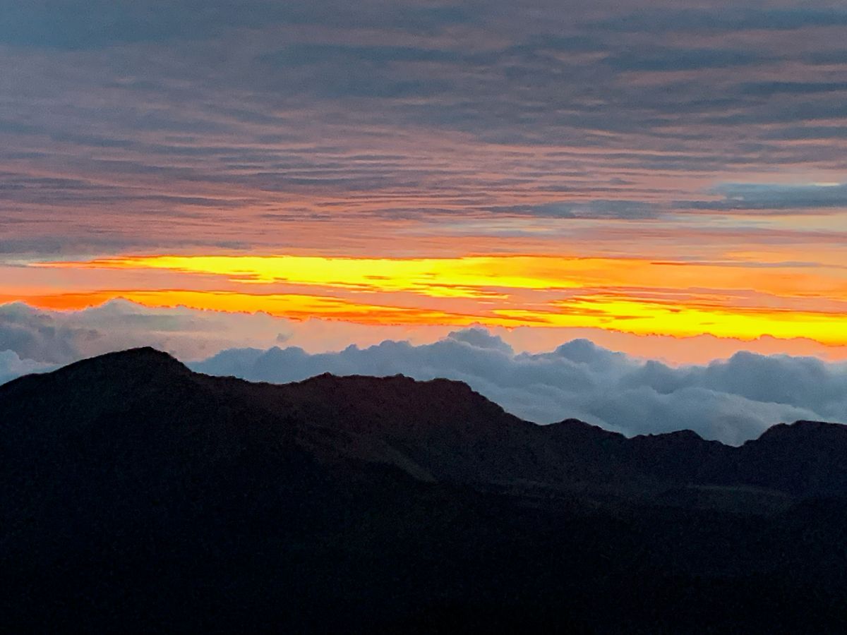 The sunrise at Haleakalā was truly a precious experience. The sun rising from the magnificent sea of clouds is hard to describe. The space where we waited in the dark, shivering from the cold, transformed into a bright and warm glow with the sun's arrival—it's something you can only understand by experiencing it. The starry sky was also exceptional, but the beauty of the changing colors of the sky is beyond words.