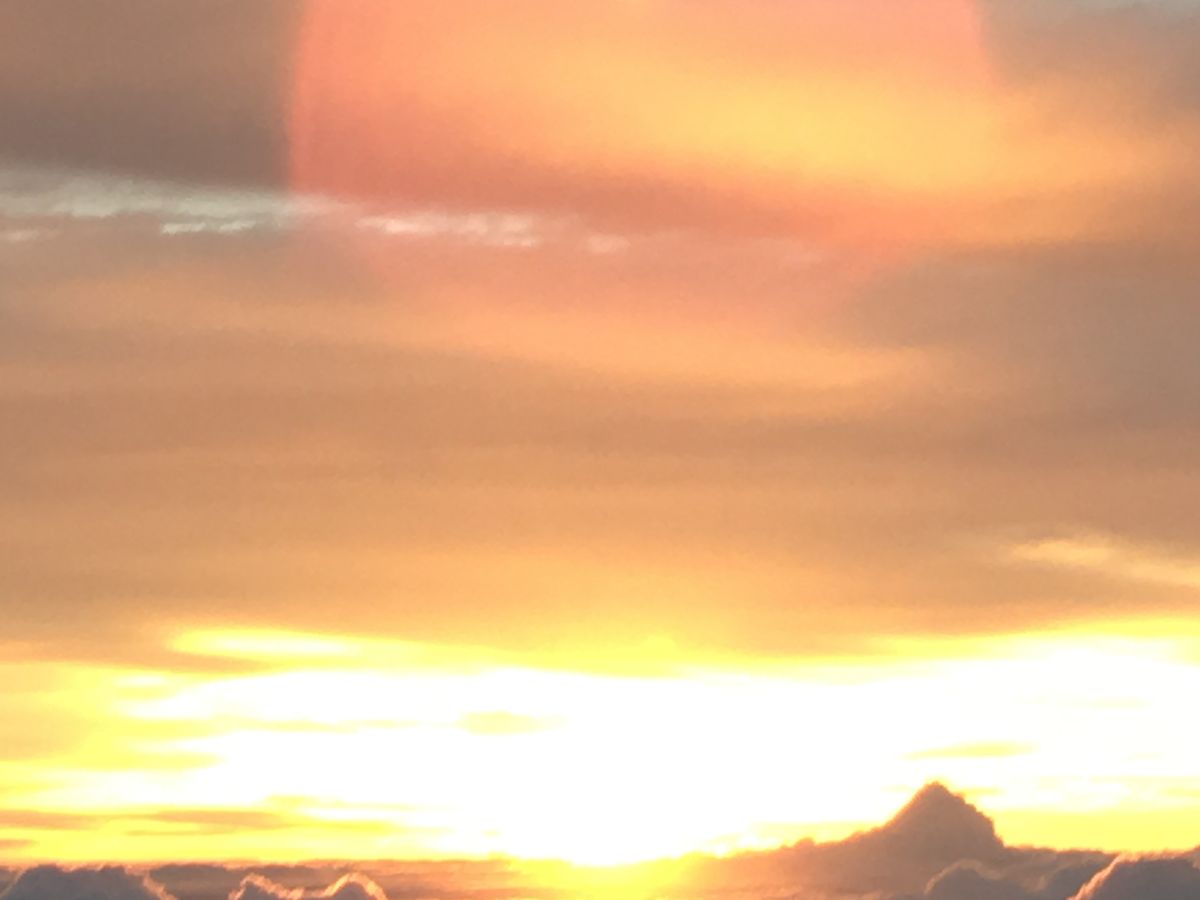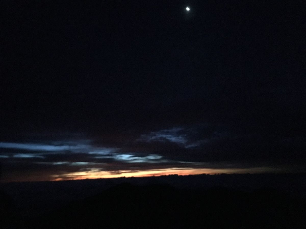 山頂付近のビジターセンターまで上がりバスを降りるとガイドさんもびっくりするほどの強い風で吹き飛ばされるほどでした。息を吸うのもやっとな感じです。そんな中ビューポイントまでやってきてそこで待機。じーっと寒さと風に耐えながら真っ暗な中待っているとオレンジ色の光がうっすらさしてきます。本当にゆっくりゆっくり日が昇っていき雲を染めていきます。本当に今までに見たことのない光景です。太陽の光が差した瞬間現地の方達が歌い始めます。本当に神聖な荘厳な空気があたりに満ちました。感動的な体験で一生忘れないと思います。