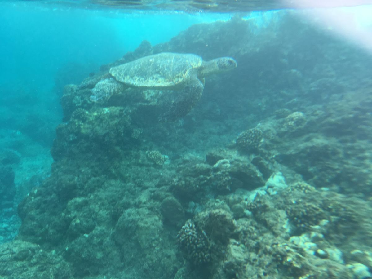2本のシュノーケルのうち、2本目のウミガメスポットは最高でした。ウミガメは岩場の近くにいると聞いていましたが、その通りでした。3匹のウミガメに出会えました。