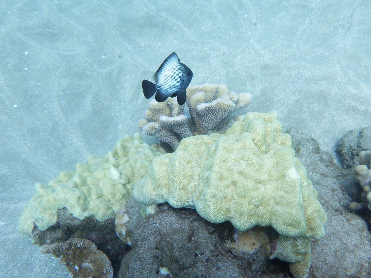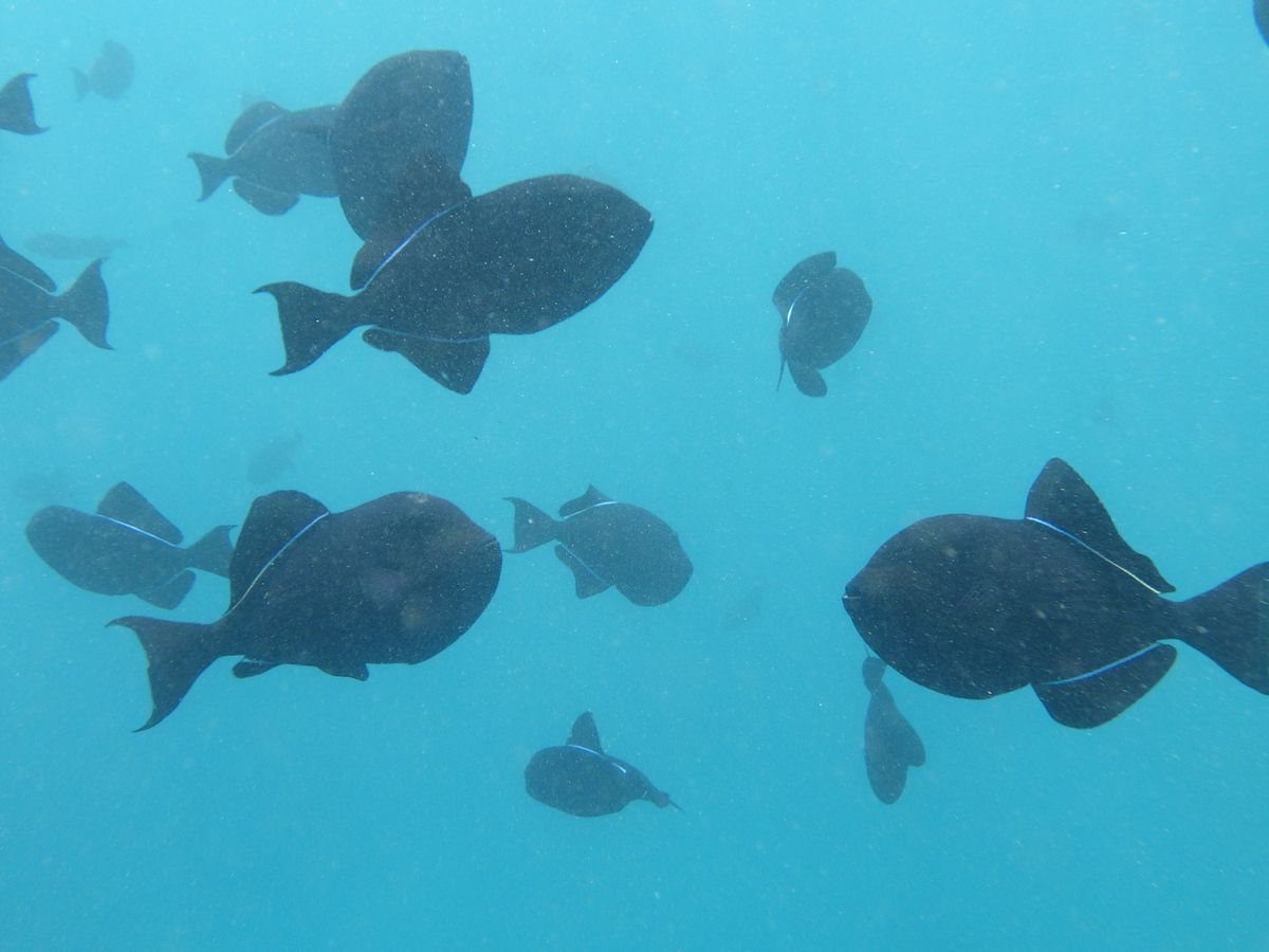 サンゴがそこそこありましたが、いっぱいいるのは、黒いモンガラばっかり