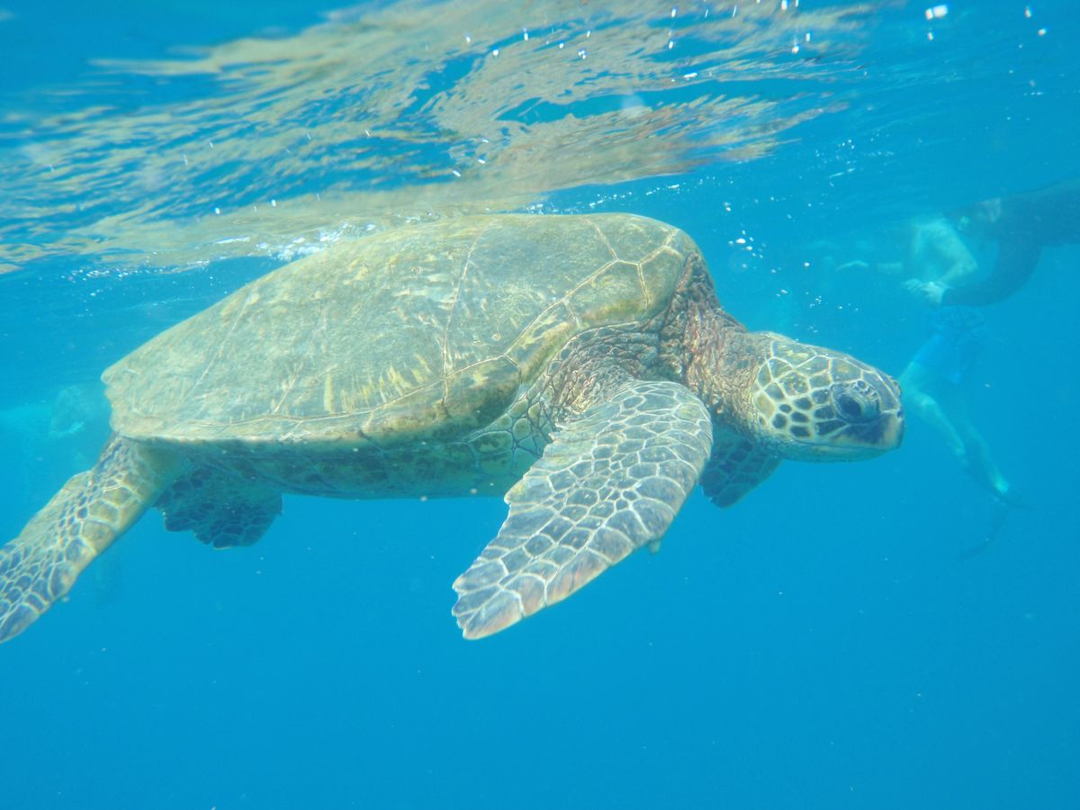 想像より結構大きかった優雅に泳ぐウミガメを間近で見ることができ良かったです。スノケーリングしながら一緒に泳いでいるかのようでした。
