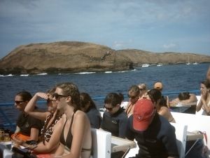 ラナイ島へ向かう途中に、一度参加者を集めてひととおり説明をしてくれたのですが、その中でドルフィンウォッチングの席がまだ7人分空いているといったようなことを言っていました。英語だったのであまり聞き取りに自信がなくて尻込みしているうちに定員オーバーになってしまいました。あとで参加した人に聞いたら、とても可愛かったそうで、思い切って申し込めばよかったと後悔しました。
