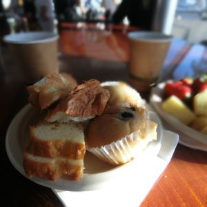 朝は船の上でフルーツやカップケーキ、ドリンクなどのバイキング。昼はハンバーガーかホットドッグで、パティやソーセージは船上グリルで焼きたてを提供するBBQスタイルです。私は車なので飲めませんでしたが、最後は港に戻るまで船上バーになり、地元のクラフトビールなどのお酒も楽しめます。スタッフの方はみんなノリがよくて、本当に楽しかったです。