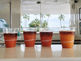 There were cookies and chips available for everyone on board, and once most guests had boarded, the bar opened. It was an open bar with options such as lilikoi mai tai, Waianae sunset, piña colada, turtletini, catatonic, and local beers from Kona Brewing. The boat was quite packed, and with only one bartender, the line became very long—so unless you were willing to wait, you could likely only get one or two drinks. They also ran out of chips, so not everyone was able to have some, until the very end when they refilled the table again.