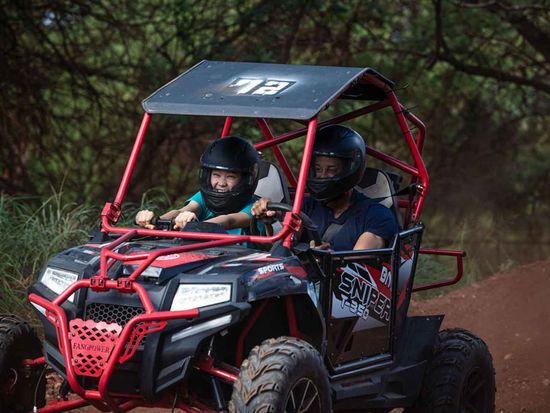 Rev up your engines for an ATV ride at Coral Crater Adventure Park on Oahu. Tackle an off-road course with hills, banked turns and dirt trails for nonstop fun. Prices are conveniently listed per person, making it easy to plan your off-road adventure.