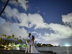 The photo session takes place at stunning backdrop of either Kapiolani Park or Ala Moana Beach Park