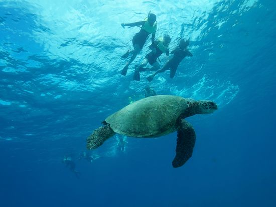 Join a guided west Oahu ocean rafting tour to spot wild Hawaiian spinner dolphins in their natural habitat, have the opportunity to dive in a swim with pelagic dolphins, and also enjoy a thrilling snorkeling escapade among turtles and colorful fish.