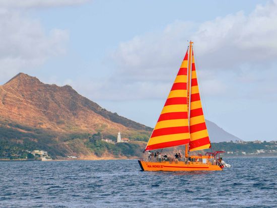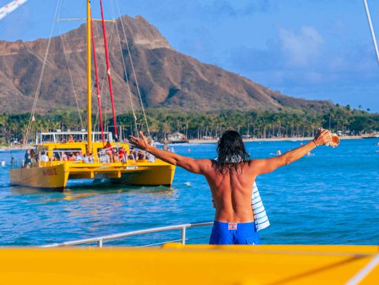 Sail along Oahu’s stunning south shore on a perfect Waikiki sunset cruise, with an open bar for unlimited fun! Sip on a variety of cocktails, beer, wine, and soft drinks as you take in dazzling panoramic ocean views. Departs from from Kewalo Harbor.