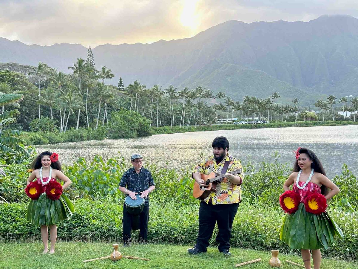 Discover Hula Garden in Kaneohe, a top-rated Hawaiian-style diner show experience showcasing a 4-course menu by MICHEL'S restaurant. Immerse yourself in nature, elegance & culture while enjoying mesmerizing hula dances & a thrilling fire-knife show.