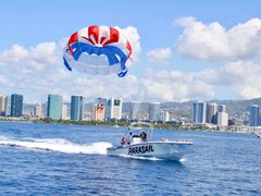 Experience the thrill of a parasail adventure, soaring 700 feet above the water. Take in breathtaking views of Waikiki's magnificent coastline on this unforgettable tour departing from Kewalo Harbor in the Ala Moana/Waikiki area!