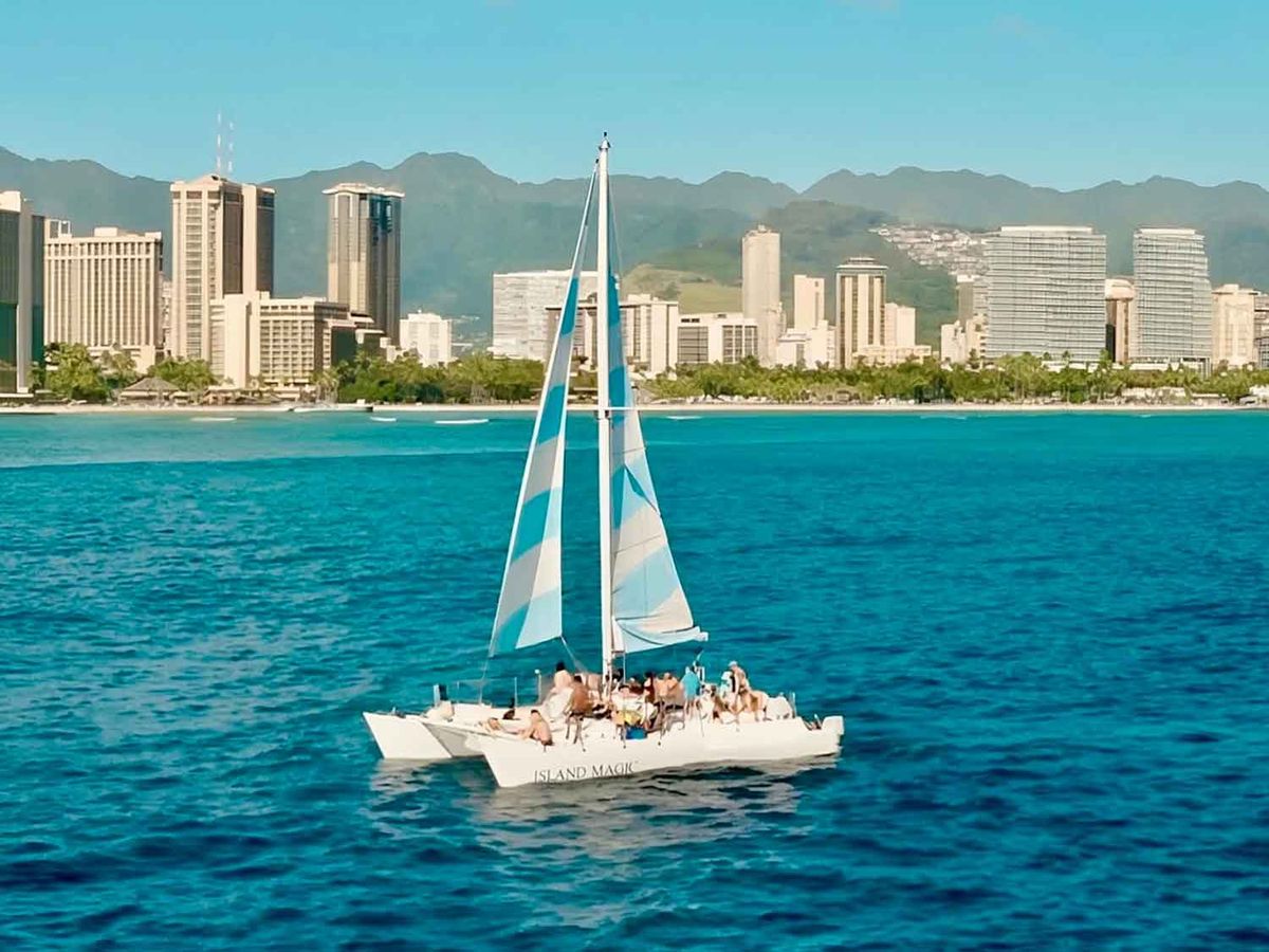Escape on a Waikiki weekend sailing cruise and enjoy a one hour ride along Oahu’s scenic coastline. Take in Diamond Head views, ocean breezes, and panoramic sights on this affordable and easy activity perfect for couples, friends, and solo travelers.