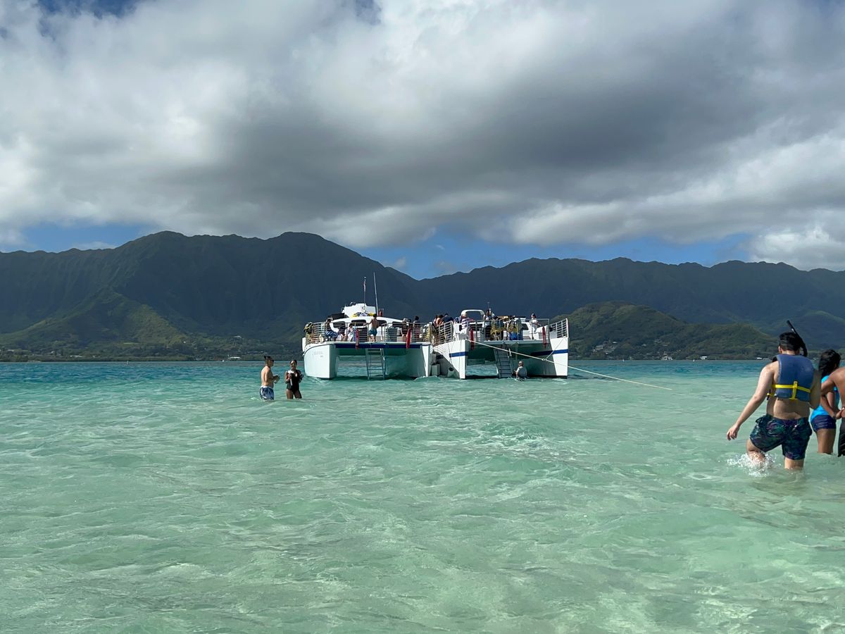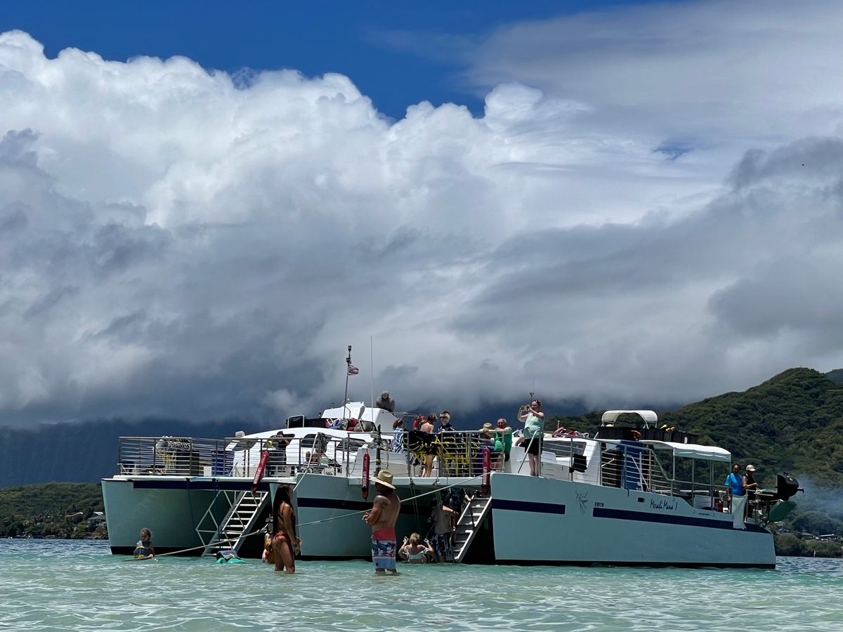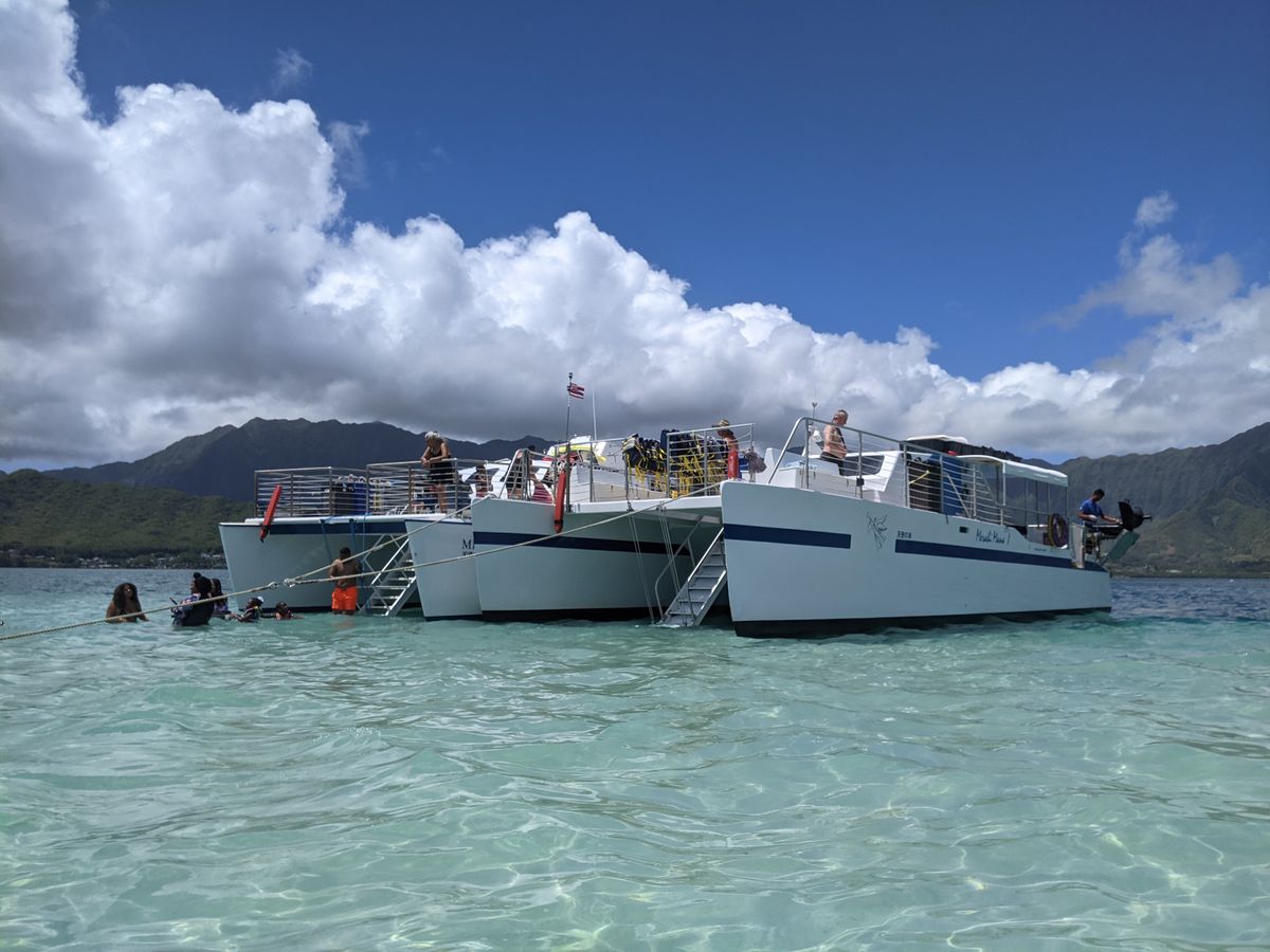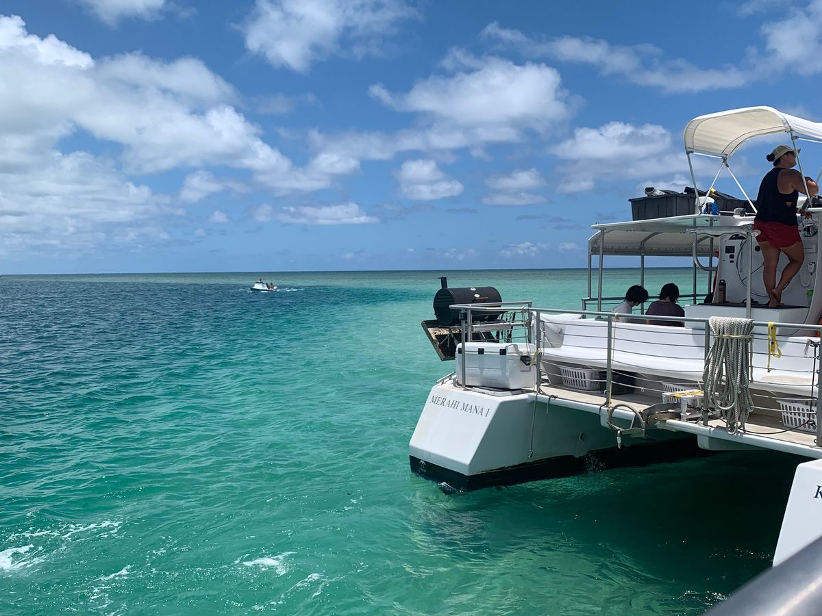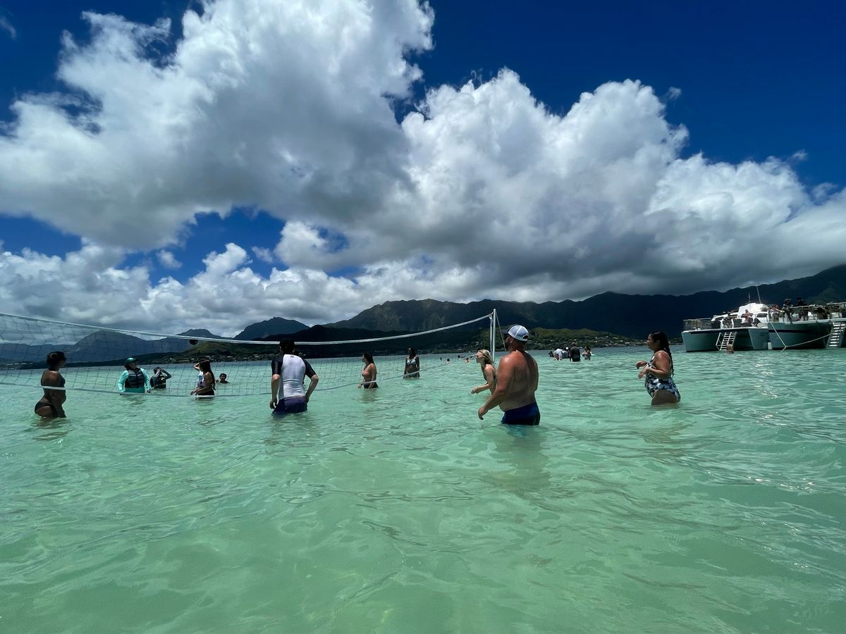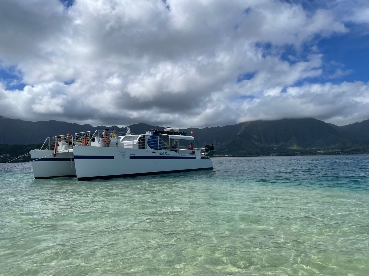 Join Captain Bob’s Kaneohe Sandbar snorkeling tour and explore a secluded sandbar and vibrant coral reef. Enjoy guided snorkeling, beach volleyball, a BBQ lunch, and a relaxing cruise on a spacious catamaran with Waikiki transportation included.