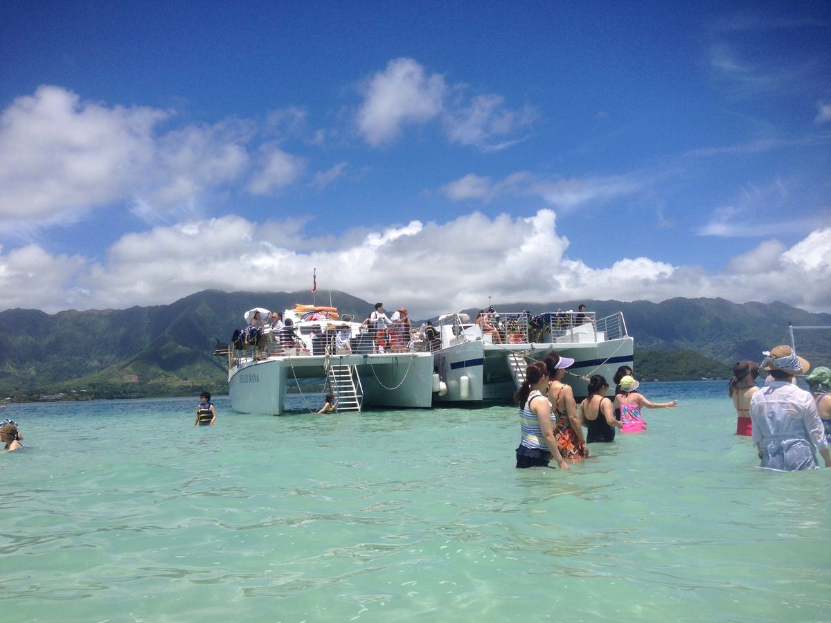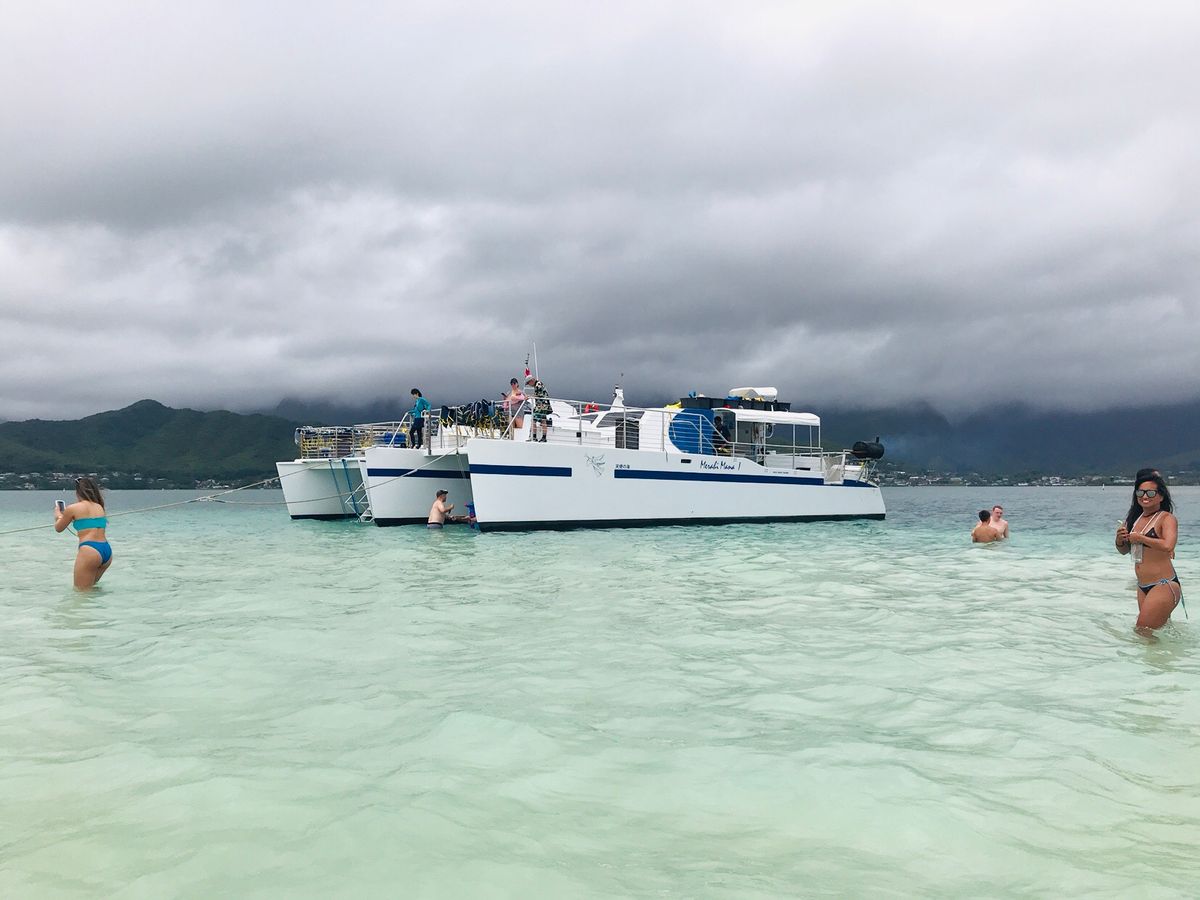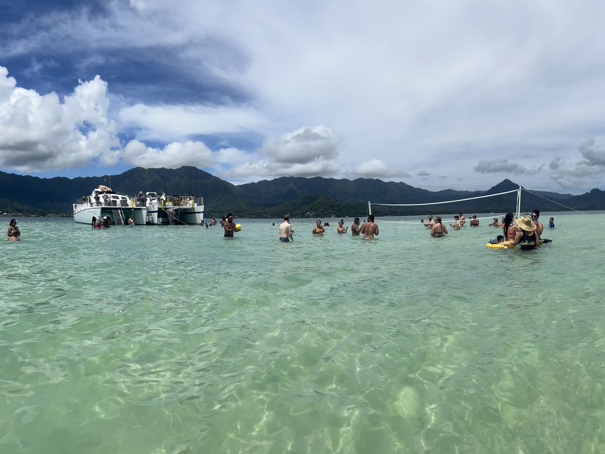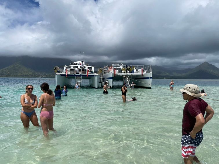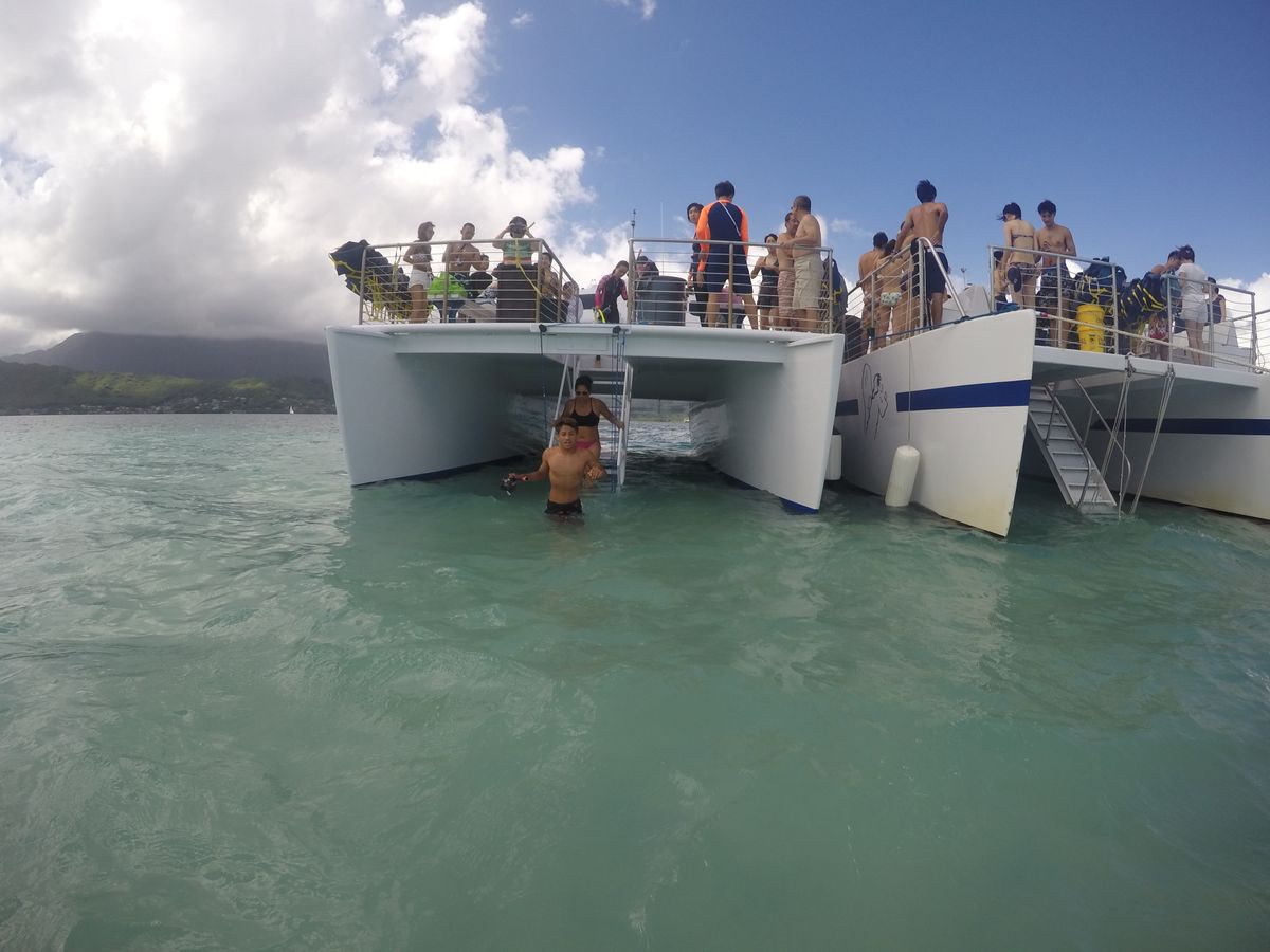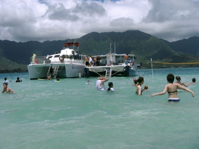 Join Captain Bob’s Kaneohe Sandbar snorkeling tour and explore a secluded sandbar and vibrant coral reef. Enjoy guided snorkeling, beach volleyball, a BBQ lunch, and a relaxing cruise on a spacious catamaran with Waikiki transportation included.