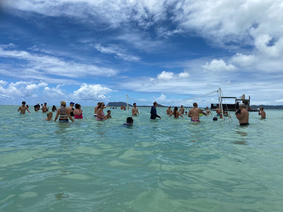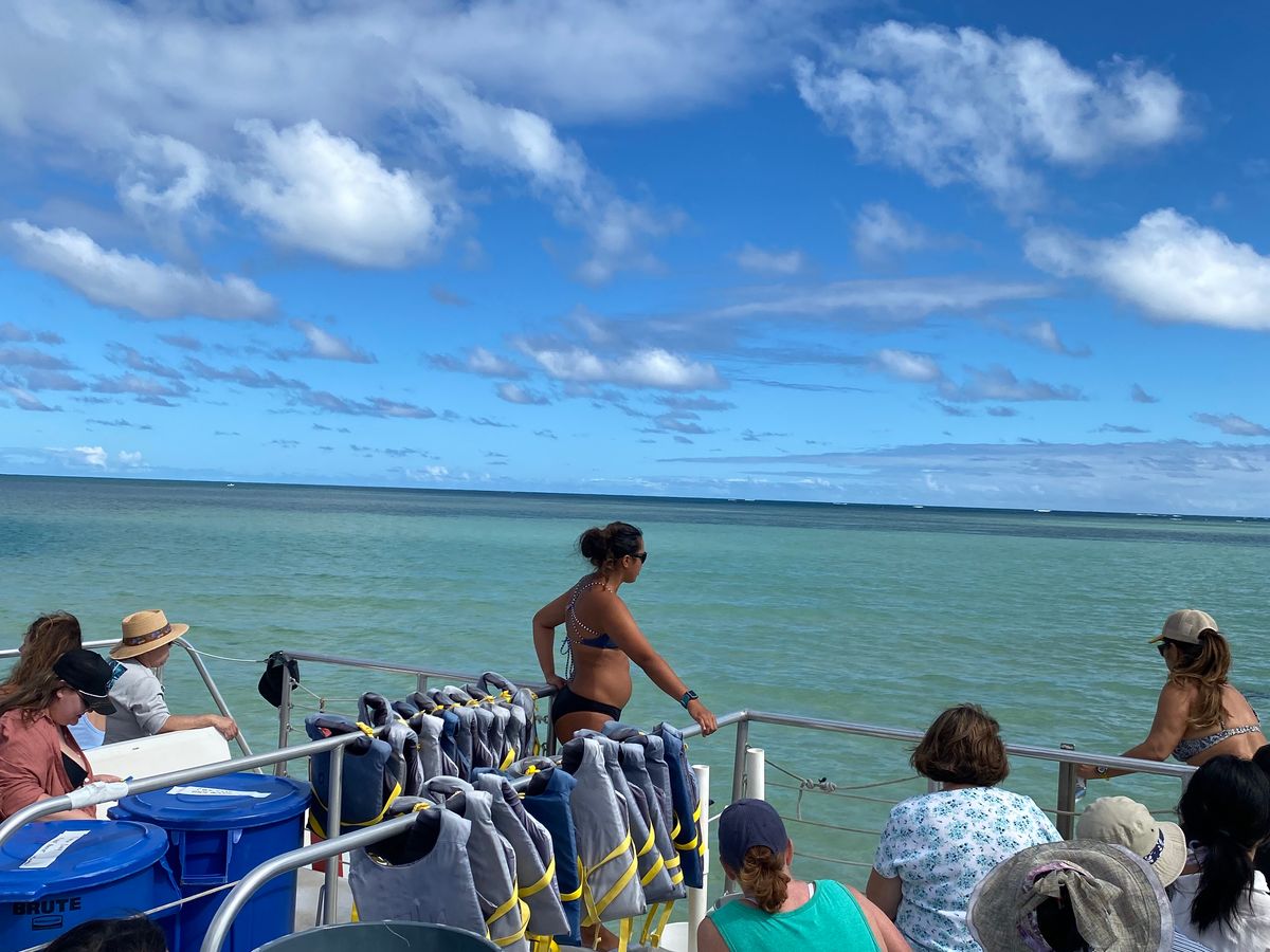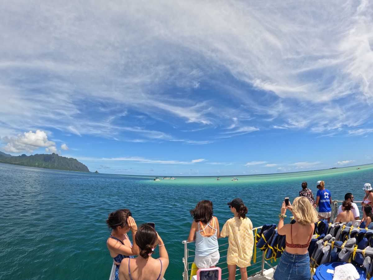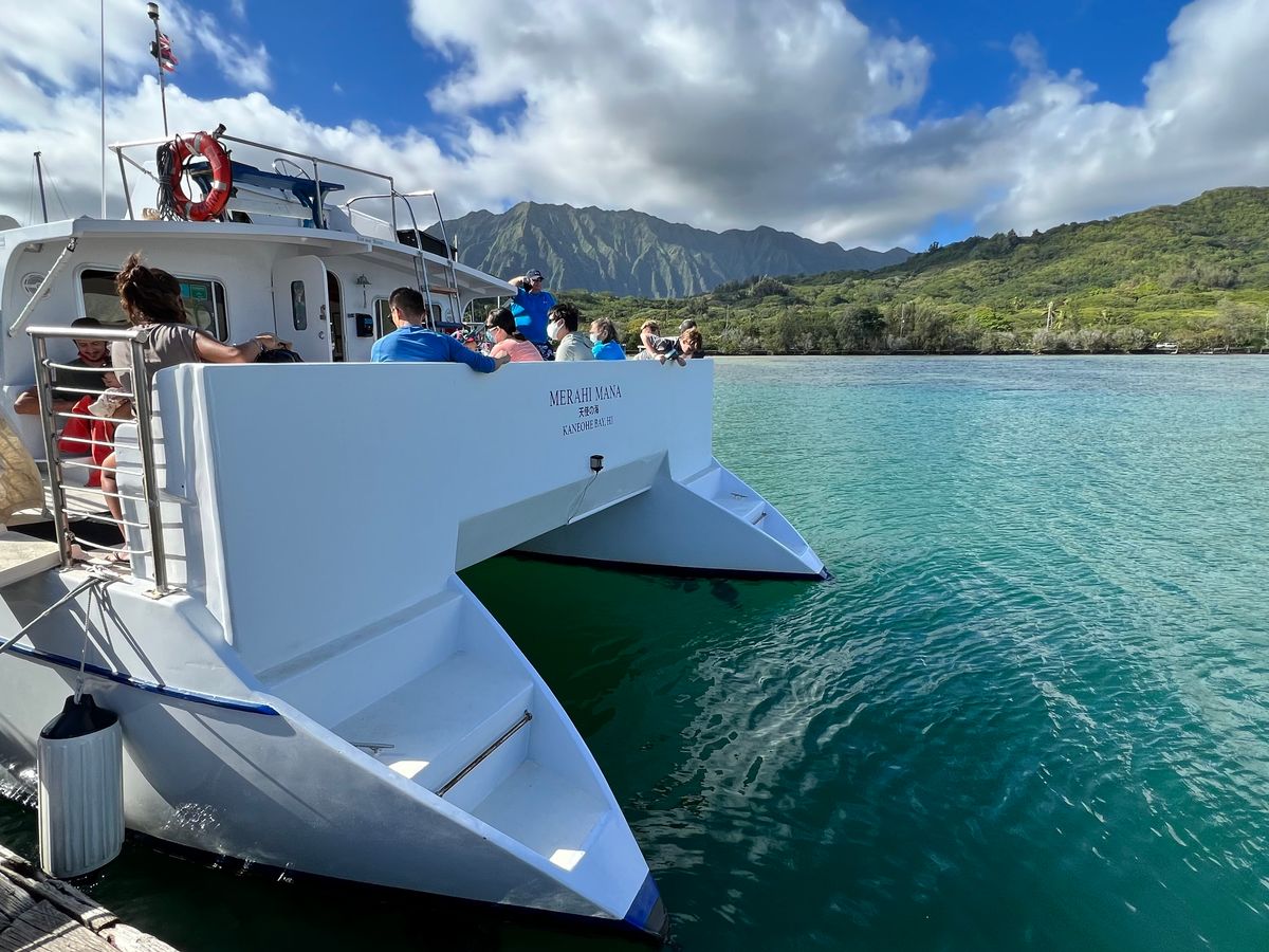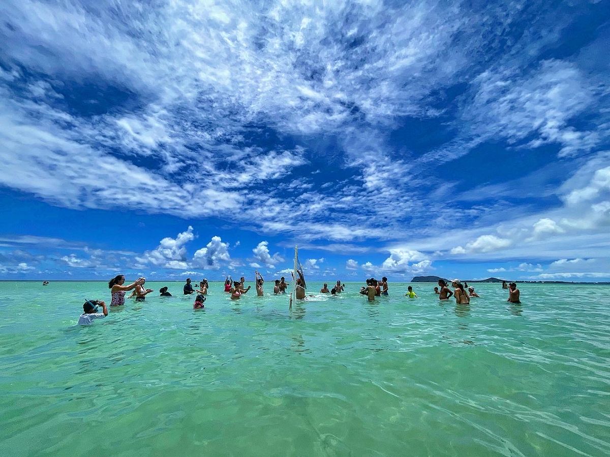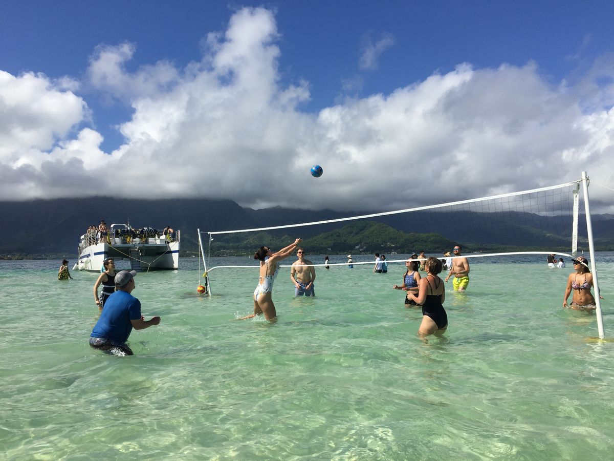 Join Captain Bob’s Kaneohe Sandbar snorkeling tour and explore a secluded sandbar and vibrant coral reef. Enjoy guided snorkeling, beach volleyball, a BBQ lunch, and a relaxing cruise on a spacious catamaran with Waikiki transportation included.