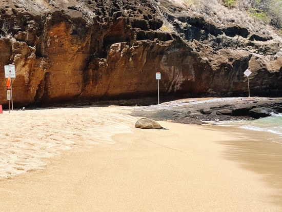 There were seals or sea lions on the beach, and we saw many fish while snorkeling. By the way, it seems that there are more fish on the left side of the beach.