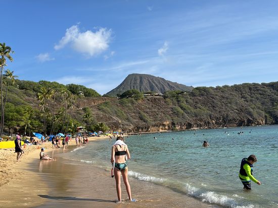 The round-trip transportation to Hanauma Bay and the rental of snorkeling gear made it easy to enjoy snorkeling with minimal luggage! Even in shallow areas where you can stand, there were fish as big as those in Thailand swimming around, allowing beginners to see many fish, which was a lot of fun. The time spent at Hanauma Bay was also sufficient.