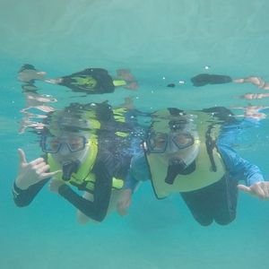 I communicated my lack of confidence in swimming, so they were attentive and held my hand, allowing me to swim without anxiety. Seeing the beautiful fish and coral made the stress from the long COVID-19 pandemic disappear. I was able to rent a bodysuit and prescription mask, and the two instructors who spoke Japanese were very kind. I would like to use this service again. Thank you!