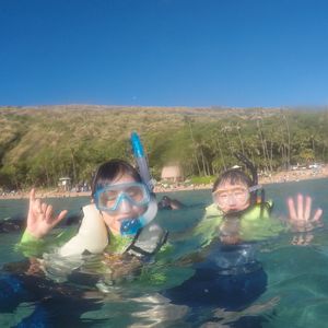 天気にも恵まれて、シュノーケリングを堪能できました。波も穏やかで遠くまで行けました。ハナウマ湾のハートが入るように写真も撮っていただいて、ガイドさんもとてもベテランのいい方でした。9歳、11歳、13歳と親の5人ともとにかく初めてだったので、日本語で体験出来て安心でした。楽しかったです。
