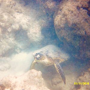 Fortunately, I was able to encounter a sea turtle! I also got to swim alongside a large school of fish, making it an unforgettable experience.