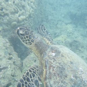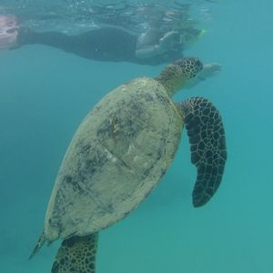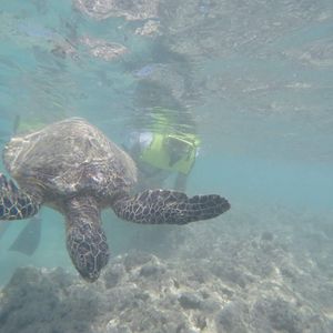 画像にホヌが現れたので思わず申し込みましたが実際には遭遇できず。浅瀬でチャプチャプのシュノーケリングに終始し少しがっかり。でもスタッフの皆さんはとても親切でした。シュノーケル初心者には適したツアーだと思います。