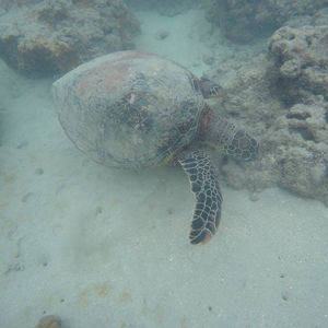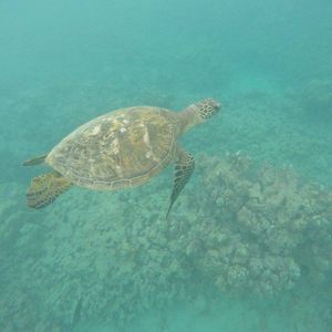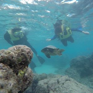 女3人で参加。ラッキーな事に2匹のホヌに会うことができてとっても興奮しましたウェットスーツ着用により、寒さやサンゴから身を守ることができたのでお借りして正解でした(^^)/ 実は今回、泳げない&海水浴初体験者がひとりいて、本人は顔をつけることや耳に水が入ること、鼻から呼吸ができないことから、浸水時にとっても怖がり、また、途中、足がつったり…と一時はリタイヤか⁈と心配しましが、インストラクターChiekoさんの親切なサポートにより、初体験の彼女も何とか1時間のシュノーケリング を終えることができました。大変お世話になりありがとうございました。本人も、良い体験が出来たことをとても喜んでおりました。ですので、泳げない方も安心して参加できますし、参加して良かった!と思えること間違いなしです。