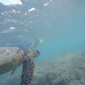 ぽんずちゃん、この度は卒業旅行でお友達とお越し頂き、ありがとうございます。お天気は曇り空でちょっと肌寒い朝でしたが、海ではものすごくラッキーで3匹もカメに会え、ツアーの半分くらいはカメと一緒に泳いでいましたね!!こんな日は滅多にないんですよ。それと大きなヒラメや大きな泳いでいるウツボ、、、いろいろ見ましたね。是非またハワイにお越しの際にはリピートしていただけましたら、次回は沖の方をご案内させていただきます。いつでもお持ちしております。