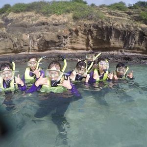 Many of our customers express a desire to try snorkeling even if they can't swim. We provide snorkeling jackets, so you can comfortably float on the surface and observe the fish. As long as you get used to breathing, even non-swimmers can kick slowly with fins and enjoy the experience. It really depends on your determination! Our instructors will be there to assist you, so please relax and enjoy the beautiful nature of Hanauma Bay!