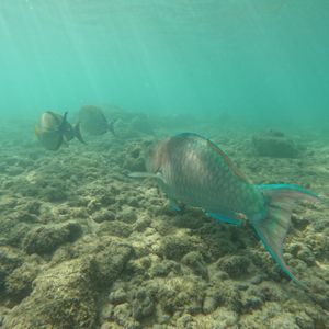 初めてのシュノーケリングで、泳ぎもそんなに自信ない感じでしたが、問題なく習得できました。大きなウツボもいて、初めての海の中の世界は素晴らしい体験でした。感動して夢中で泳いで、少し疲れてきたかな?と気づいたころに丁度一周がおわり、そんなに体力ない方でも楽しめると思います。ガイドさんも、無理にテンション上げさせる感じでなく、親切でリラックスした感じの方で気持ちよく過ごせました。ありがとうございました。