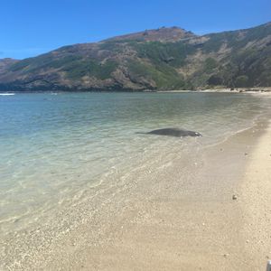 The waves were huge due to high tide, and I got swept away by the waves several times. Although the water wasn't clear, thanks to the high tide, I was able to see sea turtles!