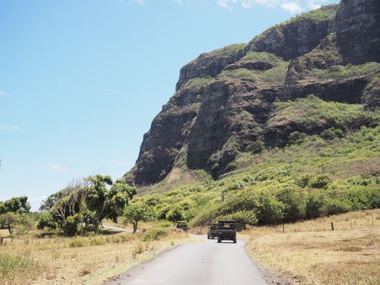 映画のロケ地を巡りながら、山の中も海沿いもバギーで走るので、ハワイの景色を満喫できました♪