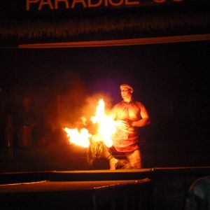 子供にハワイらしさを体験させよう~と思い参加しました。ハワイアンダンス、ファイヤーショーはもちろんですが、ショー前のいろいろなアクティビティーも楽しめました!カヌーに乗ったり、タトゥーを描いてもらったり、昔のゲーム?を楽しんだり、コーブカードで購入できるココナッツの殻に入ったマンゴーアイスは格別でした!