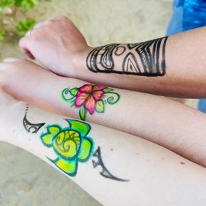 この日のショー前のアクティビティ?は、ハワイアン・タトゥ(無料/チップあり)、ストーン・ボーリング(無料)、槍投げのようなオ・オイ(無料)、南国の鳥?との写真撮影(有料)でした。ハワイアン・タトゥの列に並んでから、ストーン・ボーリングとオ・オイを1回ずつ体験して時間ギリギリでした。ストーン・ボーリングとオ・オイは体験後に貝殻レイ?が貰えます。有料の南国の鳥との撮影は記念にはなるかと思いますが、腕に居る間にかなり頻繁に糞をしていたので、個人的には無理でした。