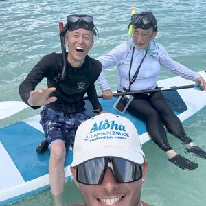 We visited the heavenly sea to celebrate my wife's 60th birthday. The tide was high, so we couldn't do the sandbar walk, but we enjoyed stand-up paddleboarding and snorkeling. I was also very satisfied to encounter a HONU! I will participate again!