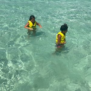 シュノーケルと海のレジャー(バナナボート、ボートやサップ等)がついていて色々な人が楽しめます。シュノーケルもとても浅いエリアなので、泳ぎが苦手でも全然安全に楽しめます。スタッフは日本語、英語ともにOKでフレンドリーです