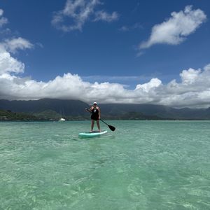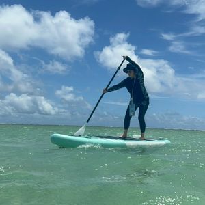 The weather was nice, and I was able to encounter sea turtles while snorkeling. I also had a great time playing with the SUP.