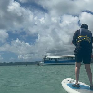 The ocean was incredibly beautiful! The staff's service spirit is wonderful! They carefully teach you how to paddleboard and there are Japanese staff members, which is reassuring. Also, when you come back from the sea and are on the boat, they offer warm tea, which was a nice touch! The low tide was off schedule, so the sandy beach didn't appear, but I had plenty of fun with the activities!