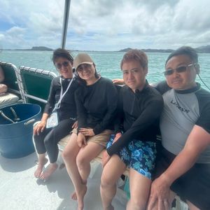 This tour used to be quite popular, and I couldn't join before because it was always fully booked. I'm glad I could participate this time. The sea felt a bit cold, but I was able to go snorkeling. I also saw a sea turtle, and the freshly grilled hamburger was delicious! The Japanese guide was cheerful, and I had a great time.
