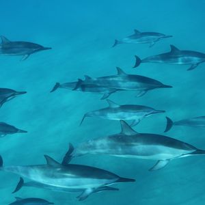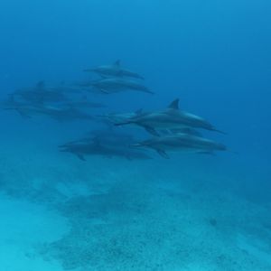Immediately, a large group of dolphins swam right in front of us. We could hear their sounds, and they swirled around us. It was incredible to see wild dolphins, and we realized how lucky our team was.