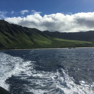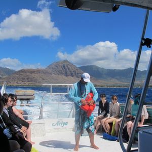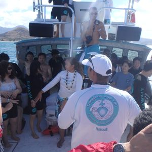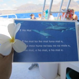I heard that other tour companies also didn't encounter any dolphins that day, and I understand that it's nature, so it's not 100% guaranteed. However, most of the time was spent traveling, and the sea conditions were terrible, leaving us with hardly any time in the water. Overall, I was left with dissatisfaction regarding the photos and videos. We received a voucher for half-price participation next time, but it's not easy for our family to come to Hawaii again, and I can't justify the cost of over 80,000 yen for that experience.