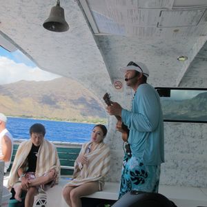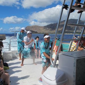 Even after returning to the boat, the seasickness lingered, and I felt unwell, not to mention we hardly saw any dolphins or turtles, so I didn't even feel like eating a cheeseburger. There were a few others who were also taking out food. On the way back, there was a hula dance performance, but the mood inside the boat had dropped significantly, and the crew's high spirits felt out of place.