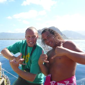 イルカの群れを1m以内で見ることができ、そのあとは巨大海亀や熱帯魚と遭遇! 船の上で船長さんが作ってくれるチーズバーガーも絶品だし、カヤックサーフィンまで楽しめ、最後は港の近くの公園でフラの体験までできます。まさにハワイでしかできないことのオンパレード! また、このツアーにはカメラマンさんも同行していて、自分たちのツアーの様子を撮った写真を申し込むとDVDで編集して翌日には渡してくれます! これでこの日のすばらしい経験が、お土産品として残ります! ツアー自体の面白さもさることながら、カタマランヨットから見るハワイのエメラルドグリーンの海をはじめとする雄大な景色も乙なものです! 絶対お勧めのツアーです! 少し代金が高い気もするかもしれませんが、この内容なら納得です!!