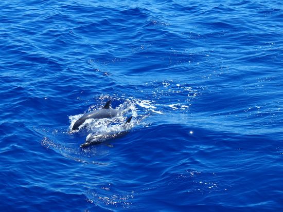 We saw both dolphins and whales, and we also spotted sea turtles.