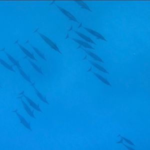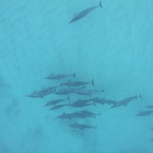 イルカを2回目のシュノーケリングで見ることができました。イルカは早いのでしっかりクルーの先頭についていく事が見るコツかなぁと。群れで泳ぐイルカはなんとも言えない感動でした。子供のイルカもみれました。また船からもウォッチングしていたらスピンジャンプしてくれました。少しだけクジラも見ることができました。自然に触れられて感動です。