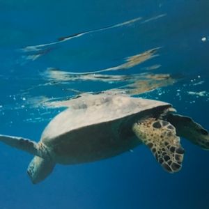 ウミガメはゆっくり私たちの近くに泳いできてくれて、娘は至近距離で泳ぐ姿を撮影できました。船の上からは鯨にも会えました。
