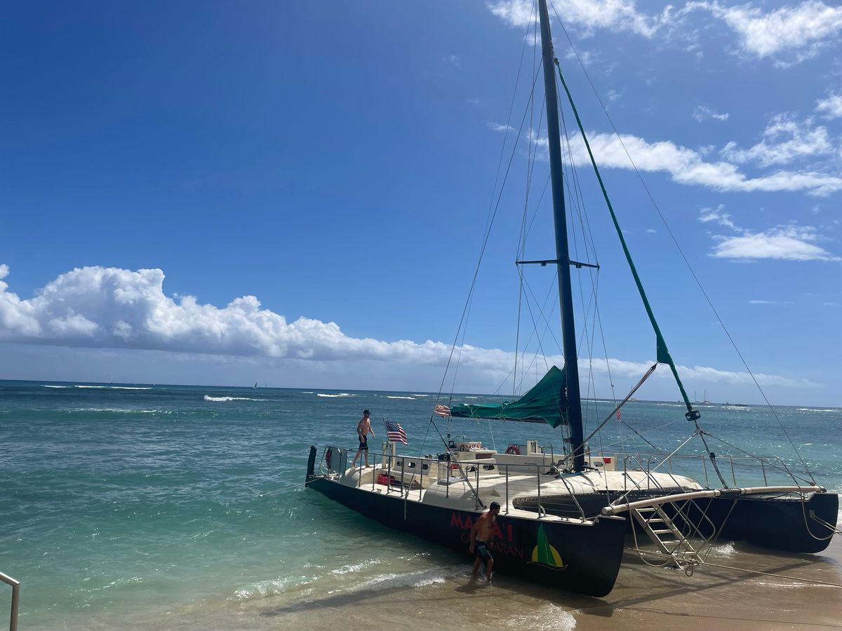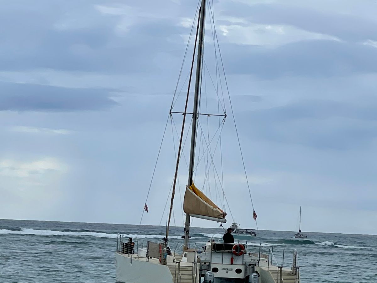 カタマラン、初めてだったのですが酔うこともなく終始美しい眺めを堪能できました。スタッフの方もフレンドリーで写真を撮ってくれたり、日本語で会話してくれたりとホスピタリティーに溢れていました。ダイヤモンドヘッドを海上から眺めるのは新鮮でしたし、何より夕陽が落ちる瞬間が感動的でした。またハワイに来た時は利用したいと思います。