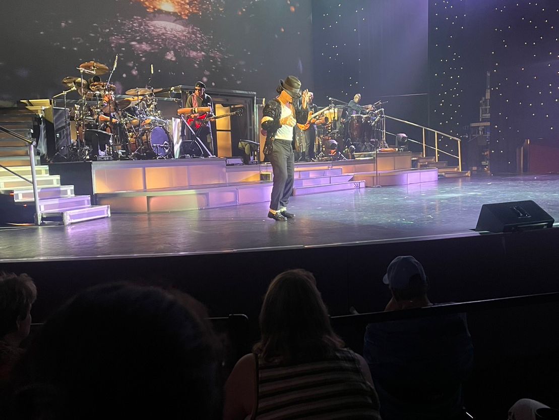 After the show, when we exited to the lobby, the impersonators of Michael Jackson and Elvis Presley were shaking hands and taking photos with each guest, smiling. My husband and I quickly took a photo with them as well. After being distanced from such experiences during the pandemic, it made me very happy.