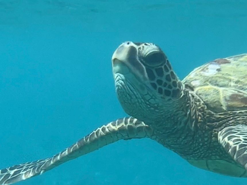 I went snorkeling with a light heart among young people. Thanks to the instructor who guided us without letting go of our hands, I was able to swim for an hour. The waves were rough that day, and I don't think I could have made it on my own, so I'm grateful. Because of that, I had the memorable experience of encountering turtles twice and swimming with them. I was tired, but it was fun.