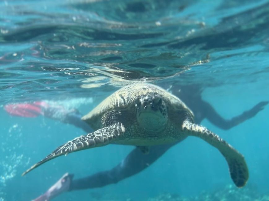 We encountered dolphins right after setting sail, but when I jumped into the water, they had already swum away, which was a bit disappointing. However, a second opportunity came quickly, and when I jumped in again, I was able to see the dolphins up close and felt like I was swimming with them! During the snorkeling afterward, I encountered sea turtles multiple times and was able to fully enjoy the underwater world of Hawaii.